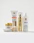 This ultimate age-defying system works synergistically to target every sign of aging. The Supreme Essence of Torricelumn™ floods skin with concentrated nutrients and peptides for enhanced treatment absorption. The Non-Foaming Cleansing Cream gently purifies while delivering vitamin-rich polypeptides. The Peptide Line Eraser precisely targets stubborn expression lines with nine advanced peptides. The Probiotic Night Cream works overnight with probiotic ferments and safflower oleosomes to restore balance and firmness. The Intensive Hand and Foot Cream repairs severely dry, aging extremities with urea and deep conditioning. Together, they deliver supreme anti-aging performance from head to toe.